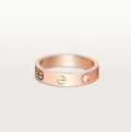 Bague Love, plaquée or rose sertie de trois zirconiums, vendue dans son écrin. Largeur 4,25mm