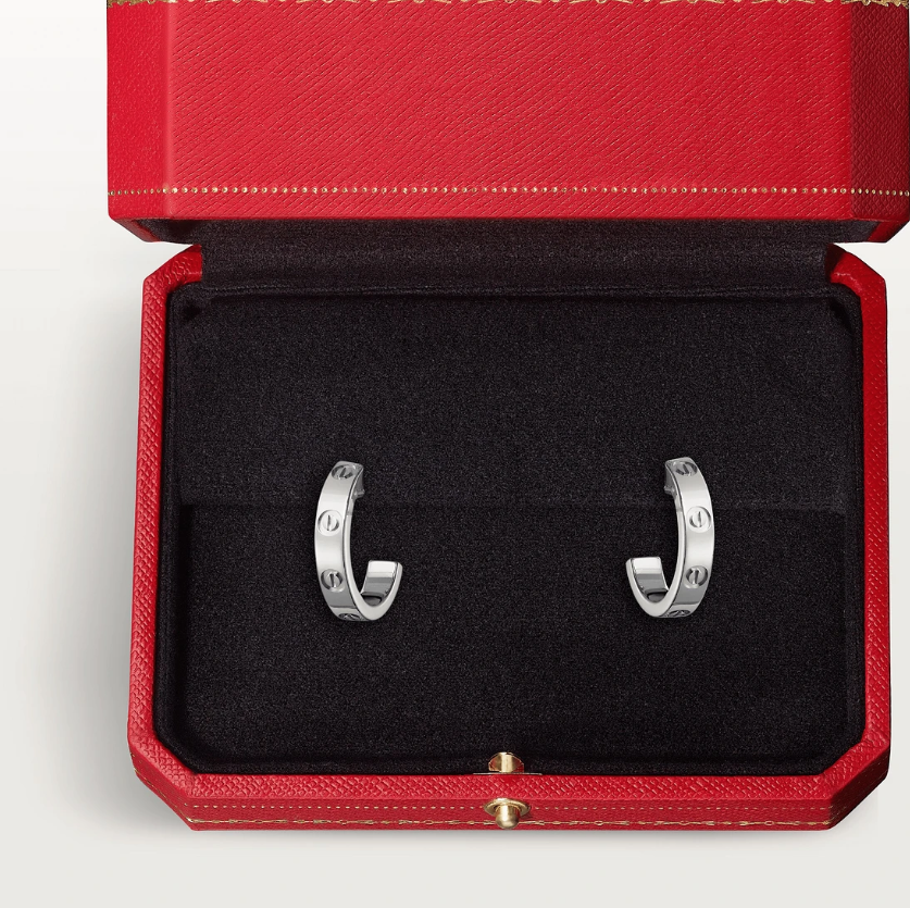 Boucles d'oreilles Love, Plaquées argent, vendues dans son écrin. Largeur 2,5mm