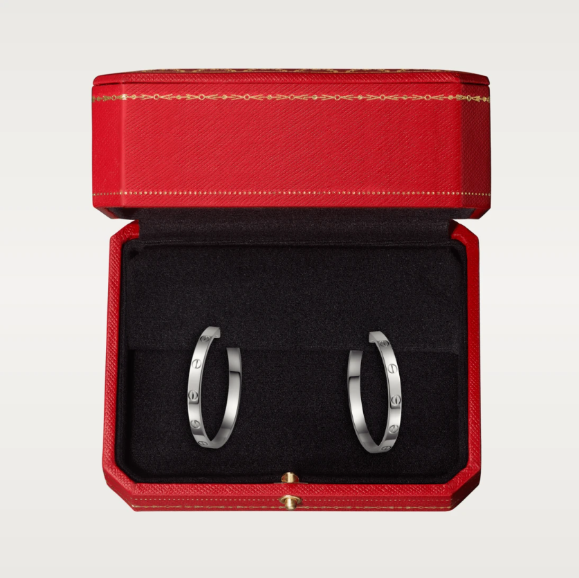 Boucles d'oreilles Love, Plaquées argent, vendues dans son écrin. Largeur 3,5mm