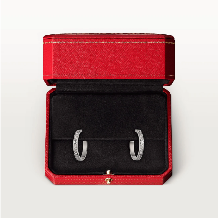Boucles d'oreilles Love, Plaquées argent serties de zirconium. Vendues dans son écrin
