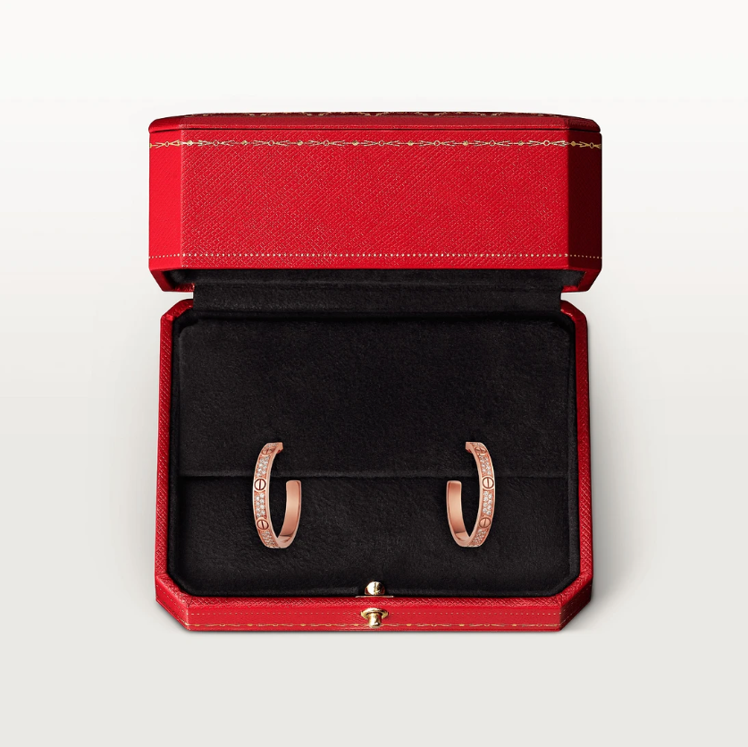Boucles d'oreilles Love, Plaquées Or Rose, serties de zirconium. Vendues dans son écrin