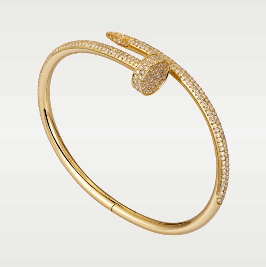 Bracelet Juste Un clou, Plaqué or, serti de zirconium, vendu dans son écrin. Largeur 6,5mm