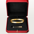 Bracelet Love, Plaqué or, serti de quatre pierres de zirconiums. Vendu dans son écrin
