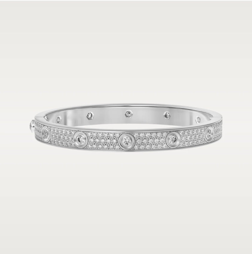 Bracelet Love, Plaqué argent serti de zirconium, Vendu dans son écrin.