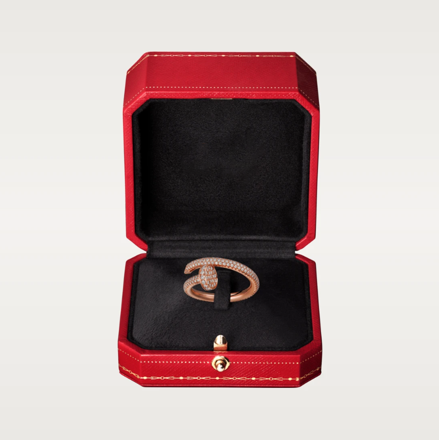 Bague Juste Un Clou, plaquée or rose, sertie de zirconium vendue dans écrin. Largeur 6,25mm